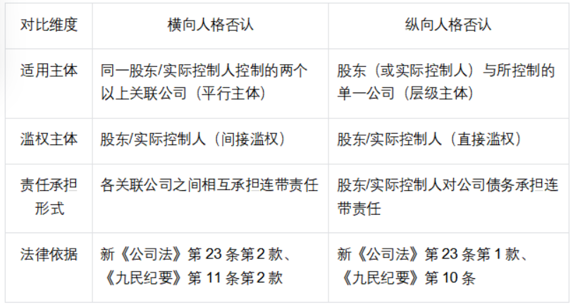 (二)横向与纵向人格否认的核心区别