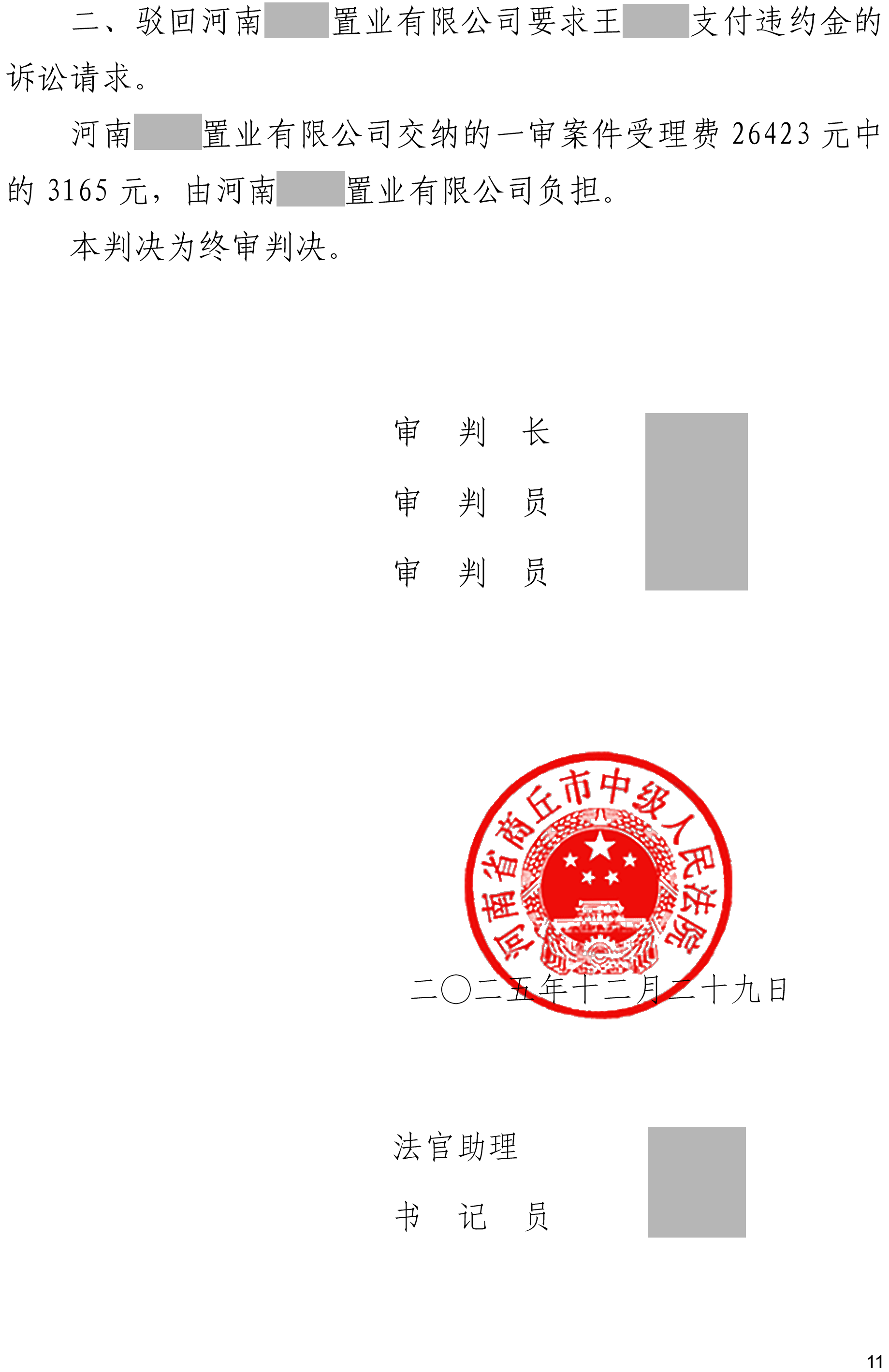 二、驳回河南某置业有限公司要求王某某支付违约金的诉讼请求。同时,法院认定某置业公司就本案第一、二项诉讼请求构成重复起诉,已另行作出裁定驳回其起诉。